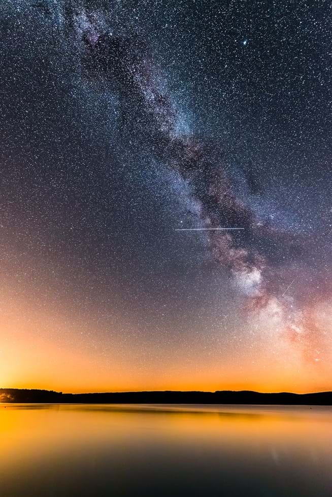 A glorious view of the International Space Station fly by with the our Milky Way over Kielder water in Northumberland.